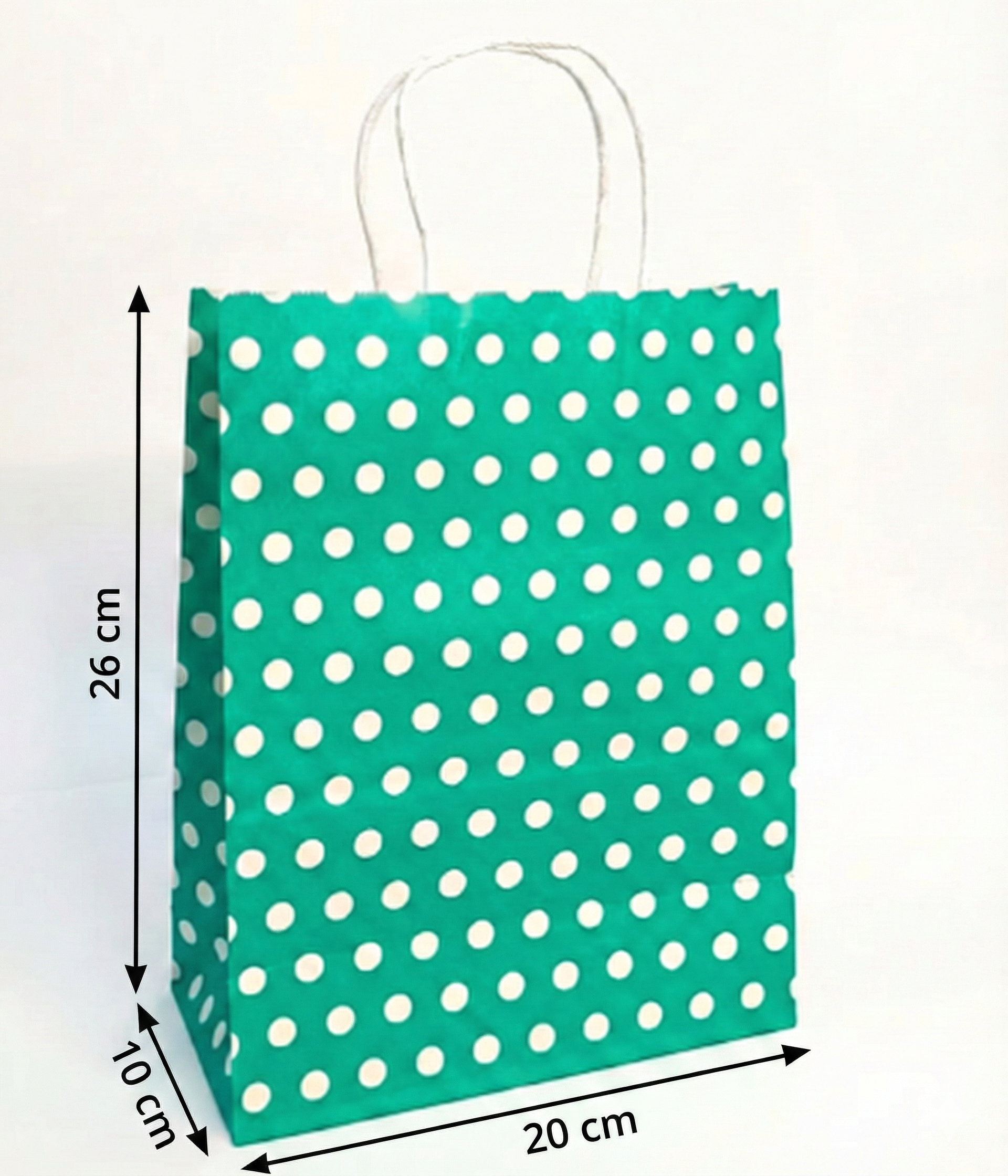 Estas bolsas con diseño de puntos ofrecen un acabado clásico y ordenado para cualquier celebración. Su fabricación en papel de alta calidad asegura la resistencia necesaria para transportar sorpresas y regalos sin riesgo de roturas o deformaciones.